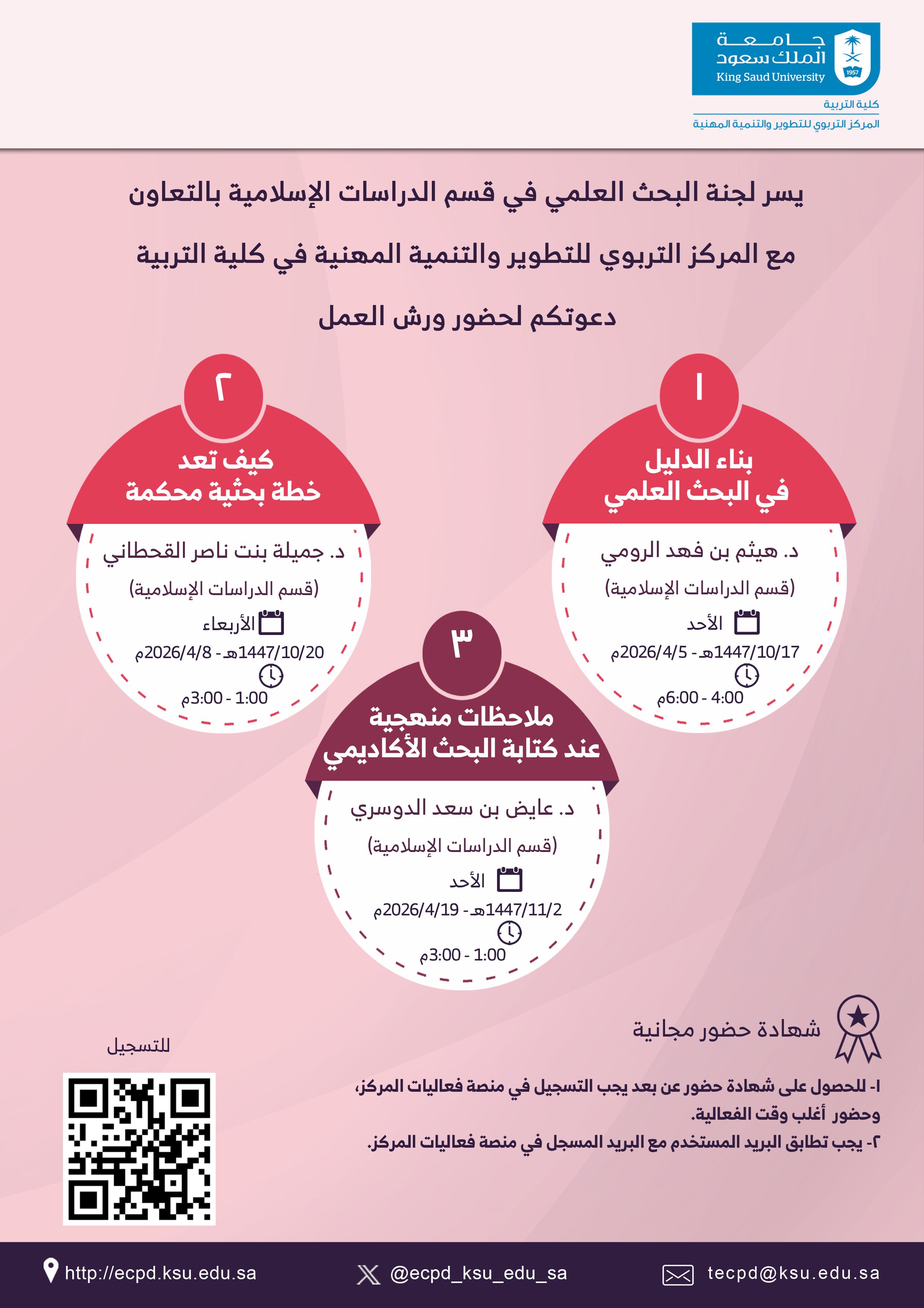 يدعوكم قسم السياسات التربوية بالتعاون مع المركز التربوي للتطوير والتنمية المهنية في كلية التربية لحضور