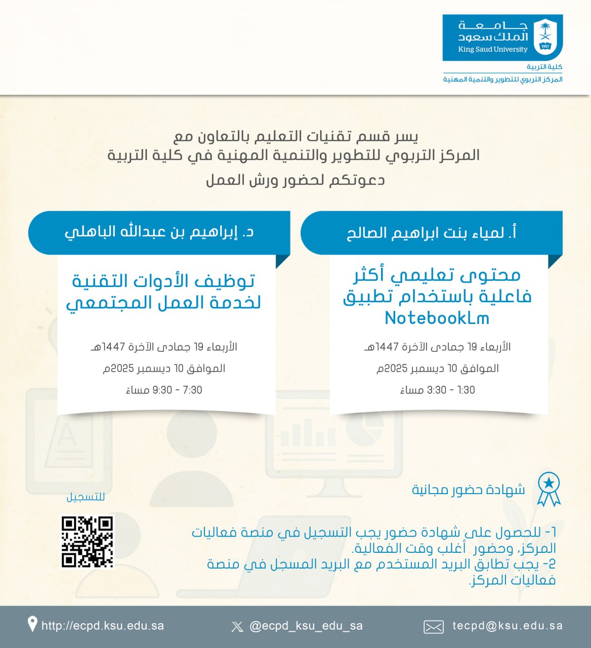يسر قسم التربية الخاصة بكلية التربية بالتعاون مع المركز التربوي للتطوير والتنمية المهنية دعوتكم